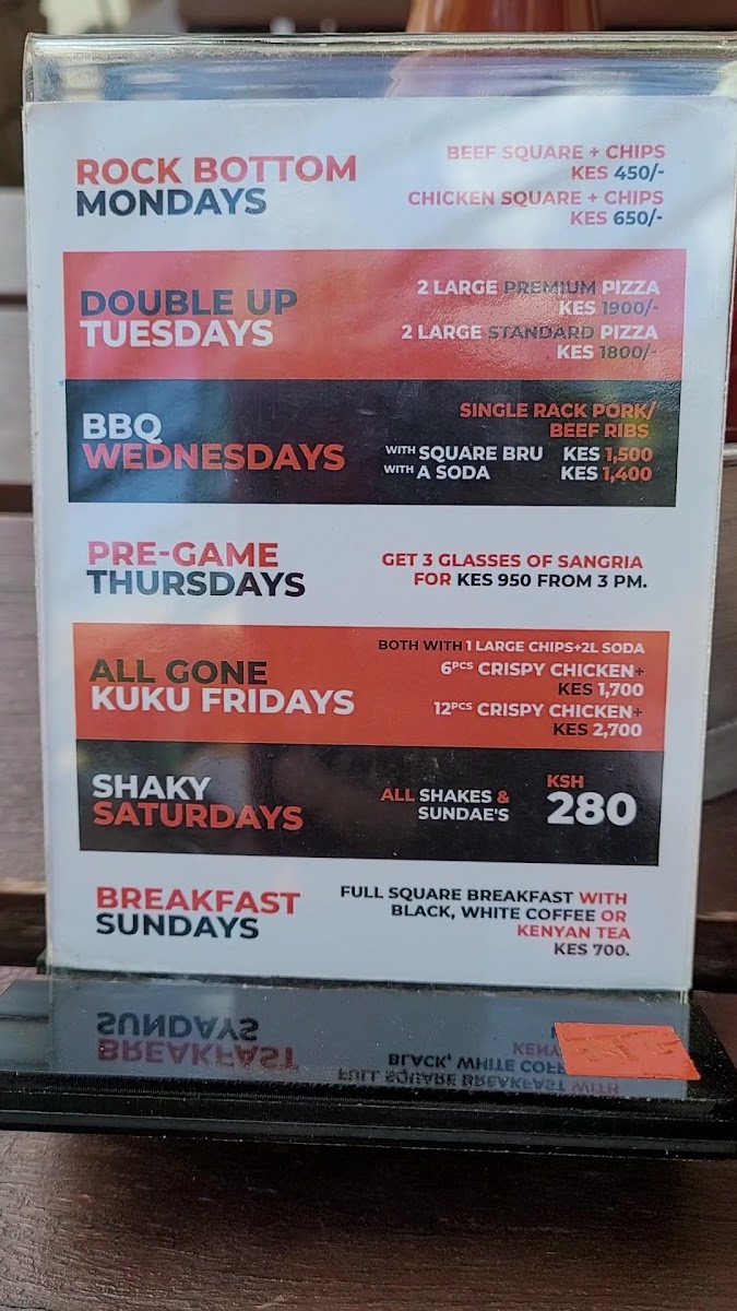 At Big Square Junction, located at The Junction Mall on Ngong Rd, Nairobi, the menu offers an impressive variety of dishes catering to a range of tastes and preferences. For those in the mood for hearty meals, the Grilled Chicken & Crispy Fish Combos include options like Fish and Chips, the 1/2 Grilled Chicken Combo, and the 1/4 Grilled Chicken Combo. If you're craving something lighter or more flavorful, the Wraps section serves up the Grilled Chicken Wrap and the Crispy Chicken Wrap.