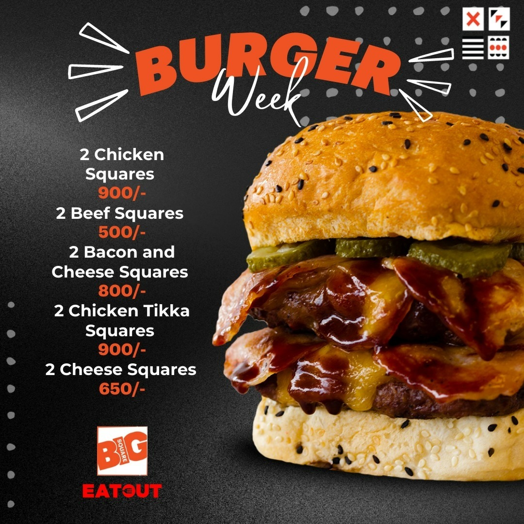 Indulge in Cheesy Thursday with the ultimate Big Square burger loaded with melted cheese, crispy chips, and a creamy milkshake.